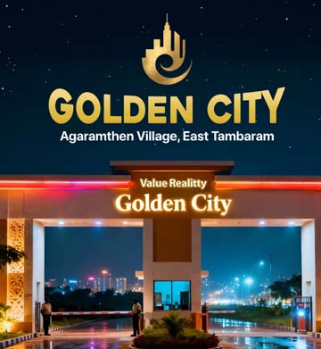 Experience the joy of modern living at Golden City, a CMDA & RERA-approved residential project by Value Reality, located in Agaramthen near Tambaram and Perungalathur. Designed for comfort and convenience, Golden City offers plots ranging from 803 sq.ft to 1,229 sq.ft, and Golden City Extn plots ranging from 749 sq.ft to 921 sq.ft, giving you the perfect space to build your dream home. With wide roads, clear titles, and a peaceful environment, it's the ideal setting for a comfortable and secure lifestyle. Enjoy unmatched connectivity and everyday convenience with Perungalathur Bus Stand just 10 minutes away and Tambaram Railway Station only 9 kms from Golden City. Surrounded by reputed schools, hospitals, and shopping hubs, Golden City places everything you need within easy reach — a community where life grows brighter, and every day feels like home.